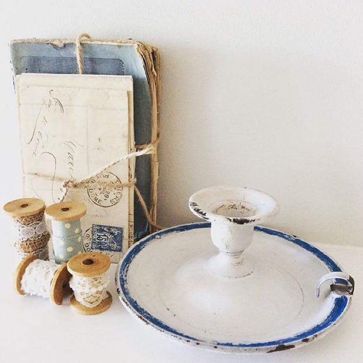Delightful little vintage enamel candlestick holder ?? Price – £15 xx #eviebsvintage #enamelware #vintagehome #vintageaccessories #vintagedecor #decor #homeaccessories #blueandwhite #vintageenamelware #weewilliewinkie