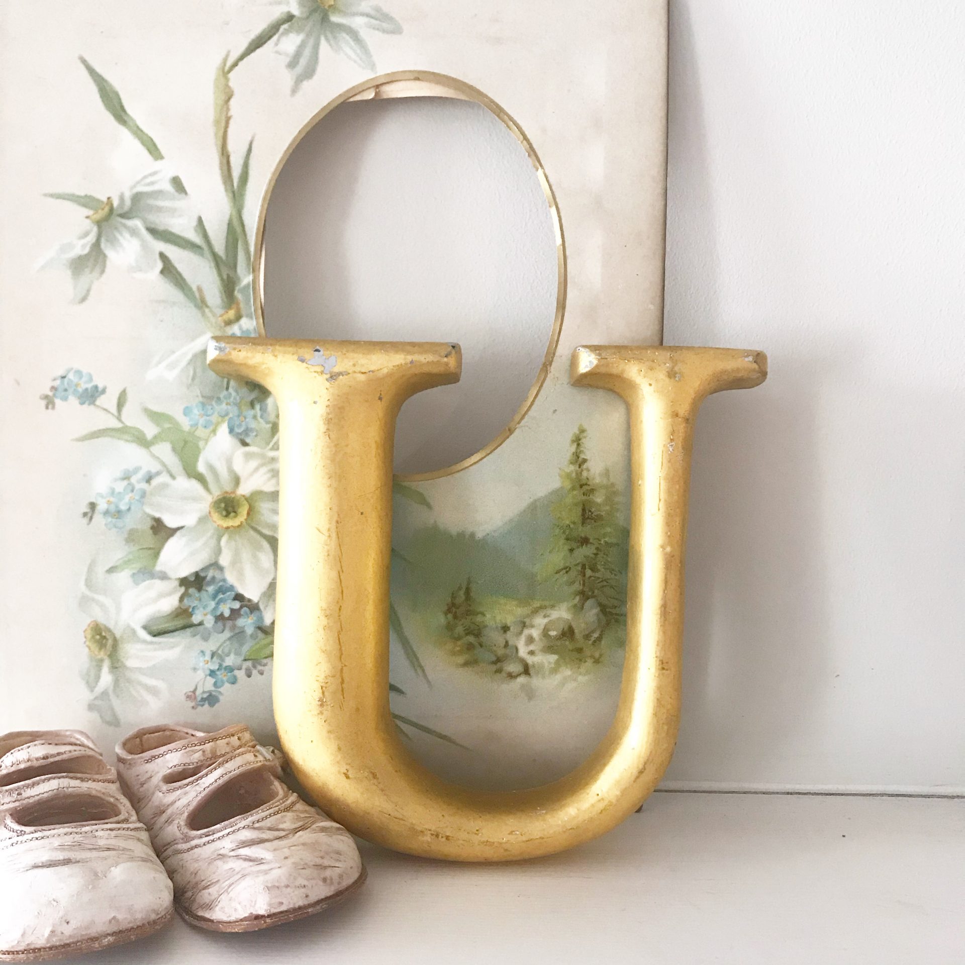 Lovely little reclaimed gold gilt letter U (15cm). Beautifully worn with age, a lovely little gift idea. Price £18.00.
