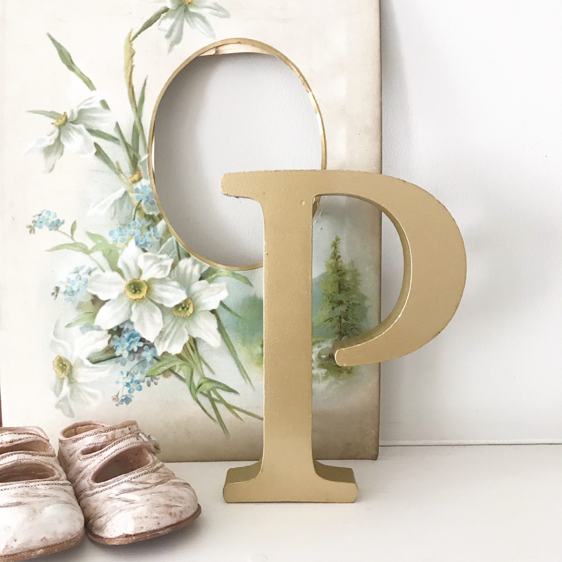Lovely vintage gold shop letter P (Freestanding – 16cm)